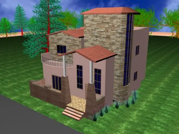 pay attention to the height pay attention to the height of the building and proportions. Openings have to be fitted, i dnt think the front gable roof works at all at that height.